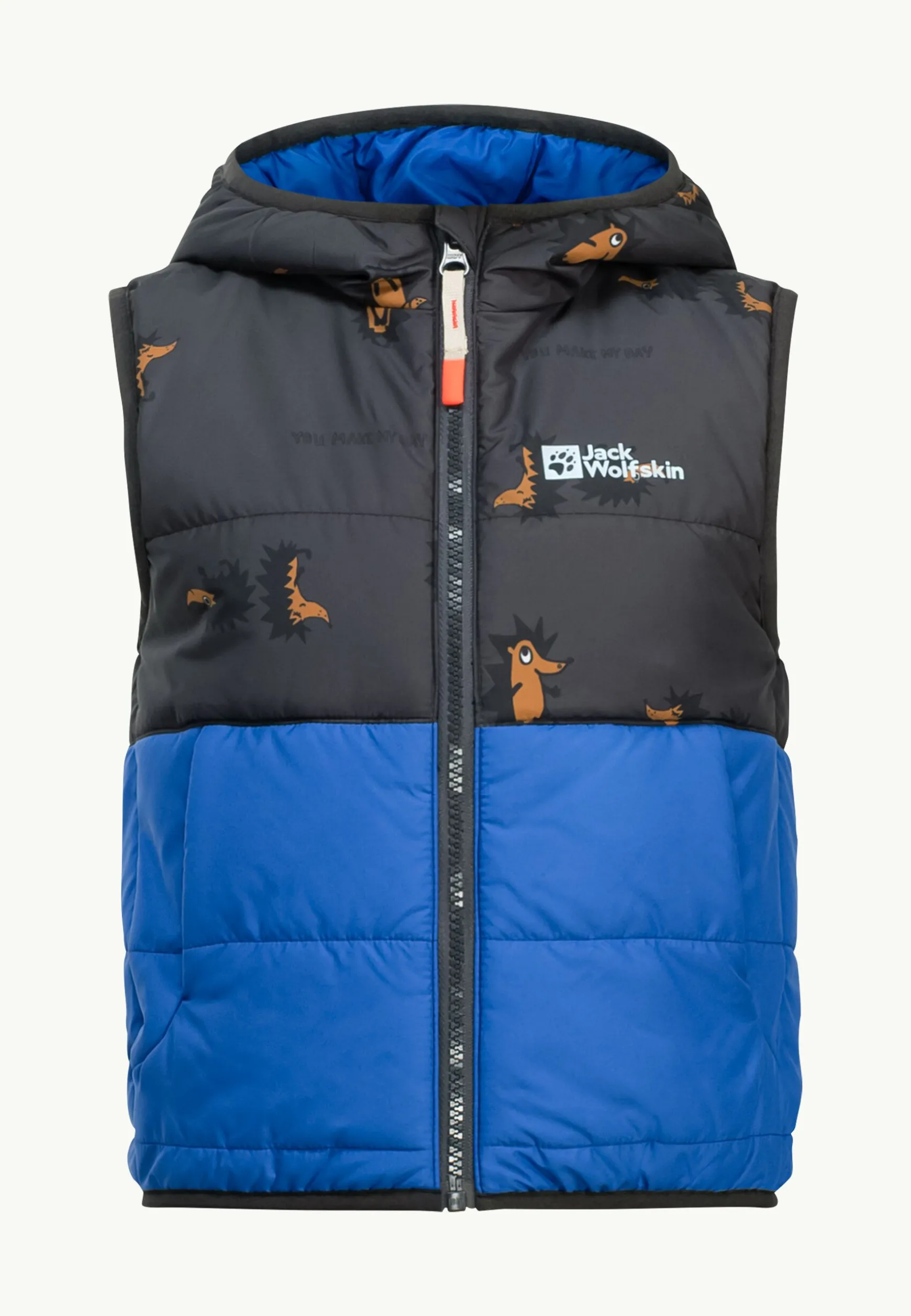 Die GLEELY INSULATED HOODED VEST vereint das winddichte TEXASHIELD PRO SOFTTOUCH DÉCOR-Obermaterial mit einem Printdesign, das die Kinder genauso lieben werden wie du. Die TEXATHERM CORE REUSED / RECYCLED-Isolierung sorgt rundum für ein angenehmes Tragegefühl.