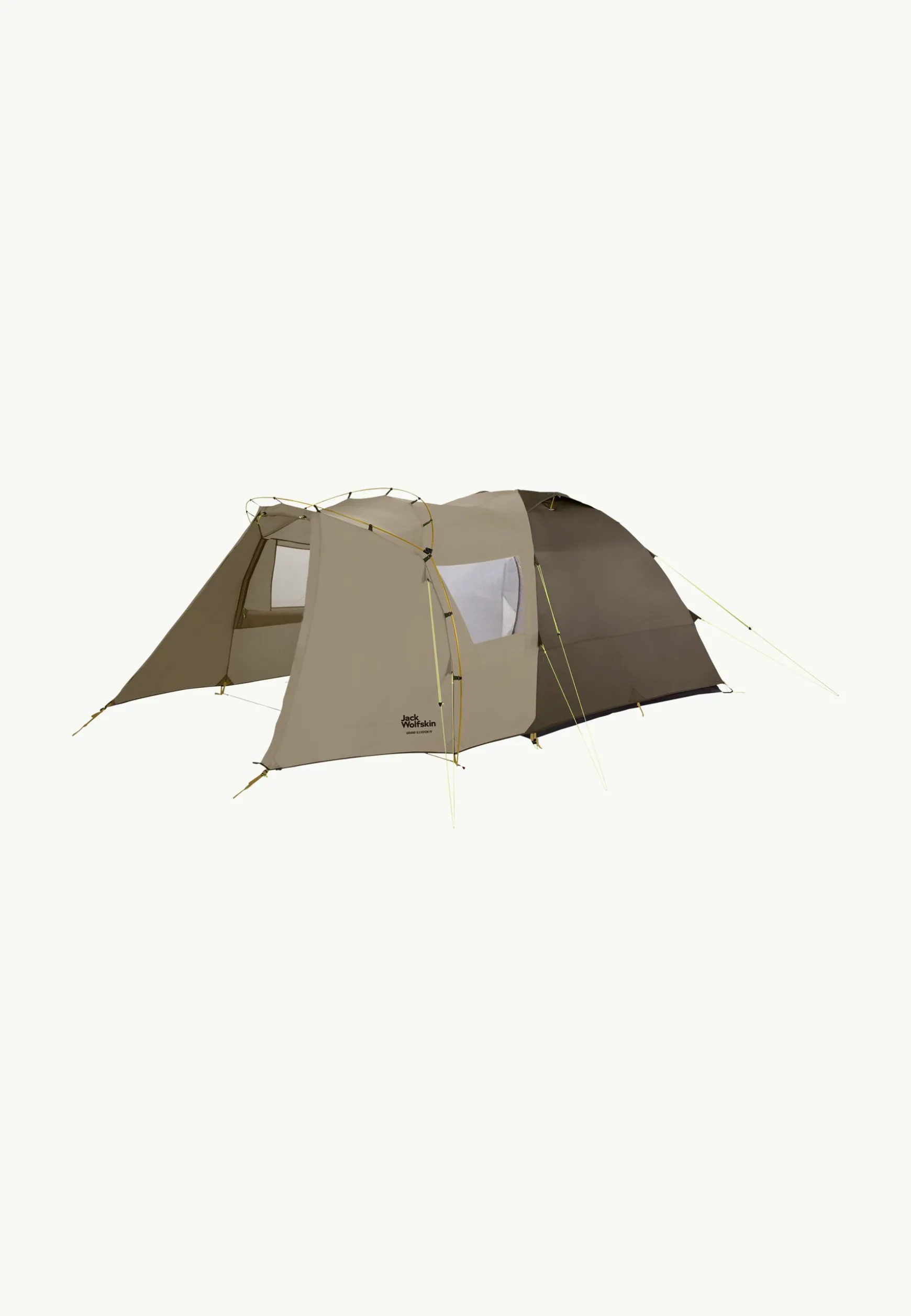 De GRAND ILLUSION IV is een rechttoe rechtaan, zeer ruime koepeltent voor vier personen, die we grotendeels van gerecycled materiaal hebben gemaakt.