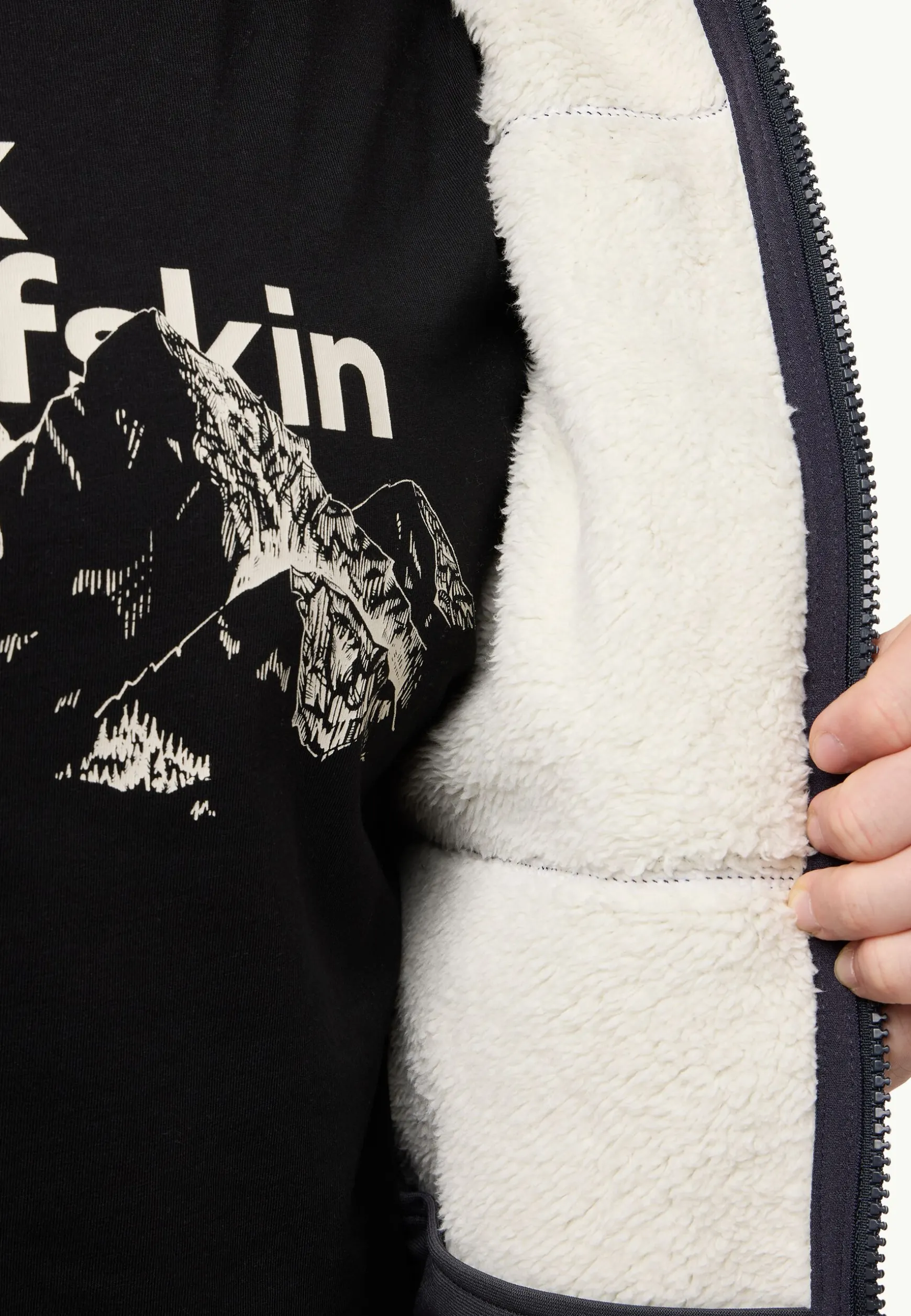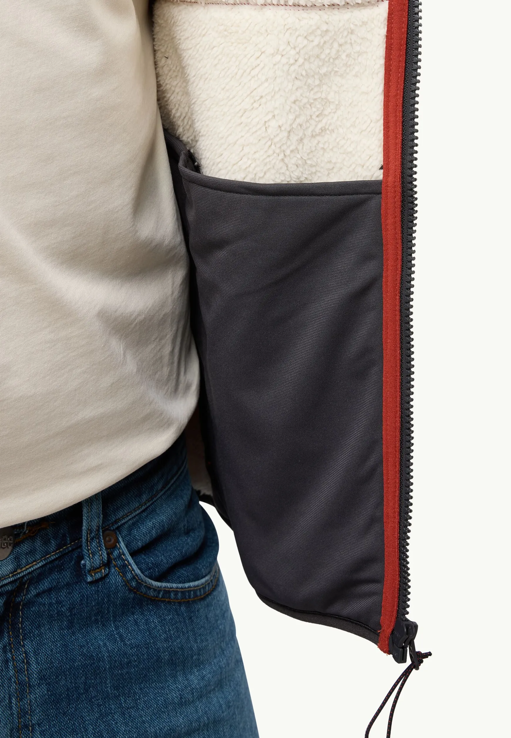 De geüpdatete klassieker KAMINFEUER HOODED JACKET bestaat uit gemêleerd 300 g SHERPA-FLEECE, dat warmte en isolatie biedt. In twee opgenaaide heupzakken zitten je spullen veilig opgeborgen en gevoerde mouwen zorgen ervoor dat je jas gemakkelijker over de kleding eronder glijdt.