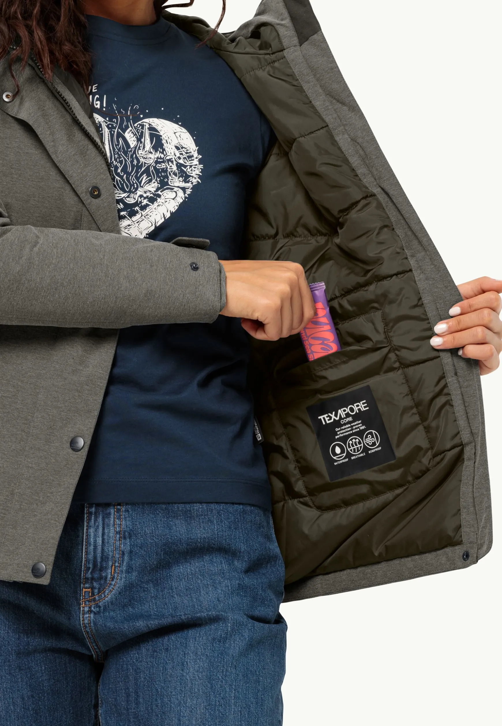 Een subtiele gemĂȘleerde look geeft het jack SNOWY PARK zijn moderne uitstraling. Dankzij het ademende en tegelijkertijd weervaste TEXAPORE-buitenmateriaal is het winterjack probleemloos bestand tegen water en wind. Binnenin bevindt zich een TEXATHERM-vulling van gerecyclede synthetische vezels, die aangenaam warm houdt en bijzonder duurzaam is. Voor nog meer comfort kan de taillewijdte naar wens worden aangepast, evenals de manchetten en het gezichtsveld van de capuchon.