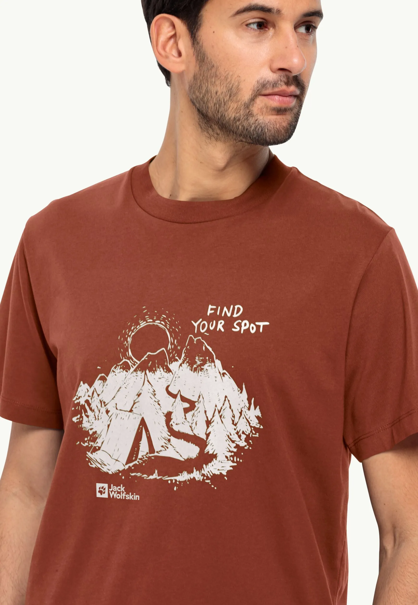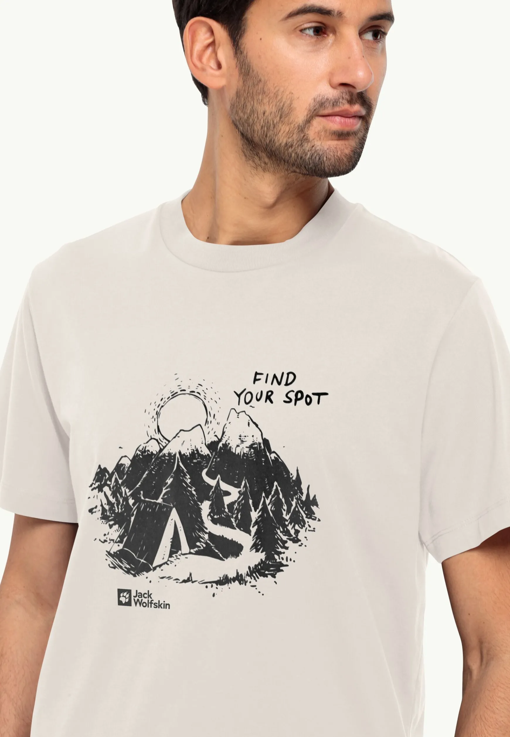Das leichte FIND YOUR SPOT T-Shirt fällt durch seine große Berg-Grafik auf. Durch die Verwendung reiner Bio-Baumwolle ist das Shirt atmungsaktiv und besonders angenehm auf der Haut.