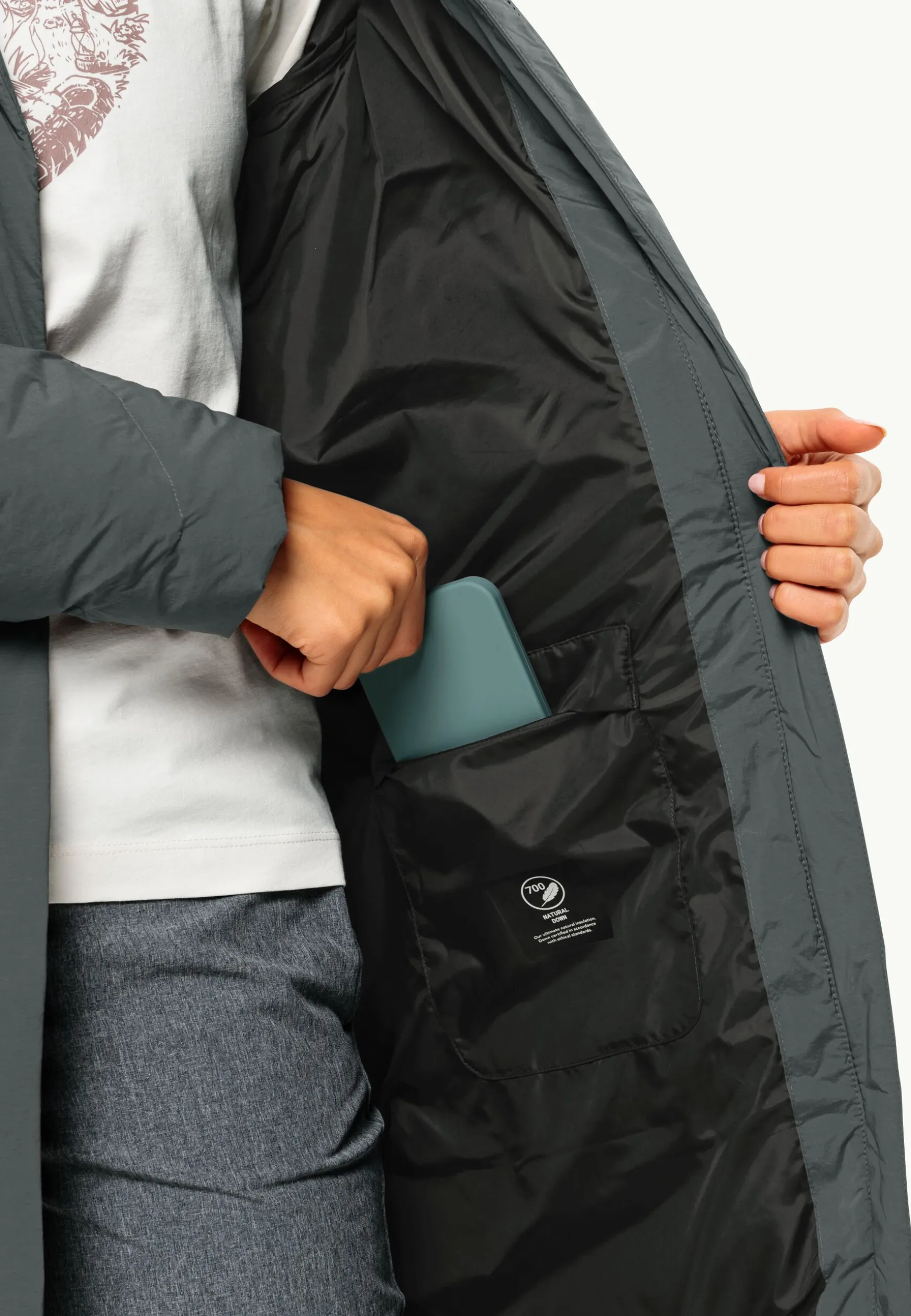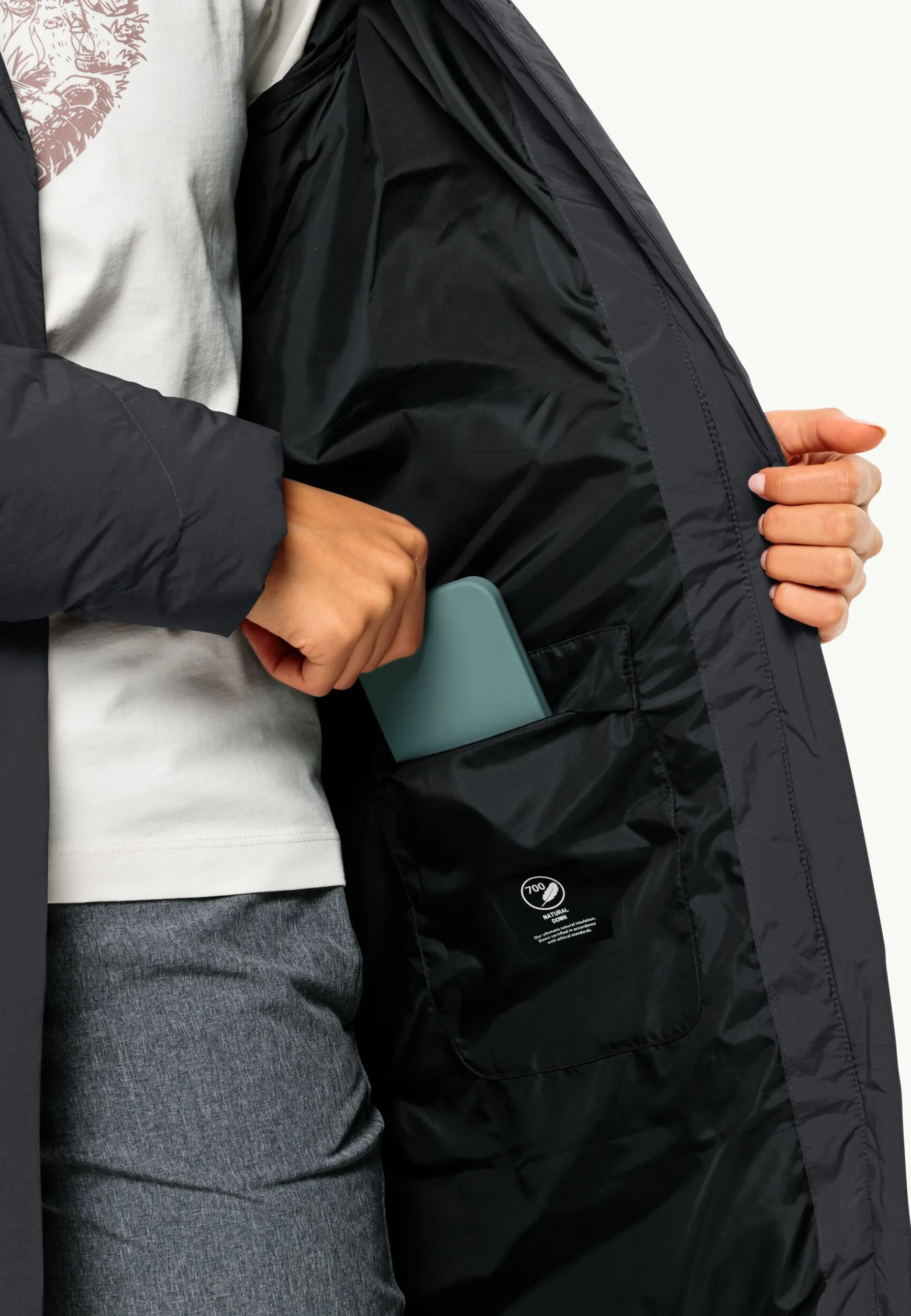 Met het moderne onion-quilt patroon accentueert de MARIENPLATZ COAT zijn licht getailleerde snit en flatteert je figuur. De feminiene winterjas geeft dankzij de uiterst vulkrachtige vulling van gecertificeerd dons veel warmte en houdt deze goed vast, zowel door de extra binnenmanchetten aan de mouwen als de hoge kraag met aansluitende capuchon. Van buiten beschermt het ademende materiaal TEXASHIELD tegen kou, het is winddicht en waterafstotend en maakt door zijn aandeel stretch de jas heel comfortabel om te dragen.