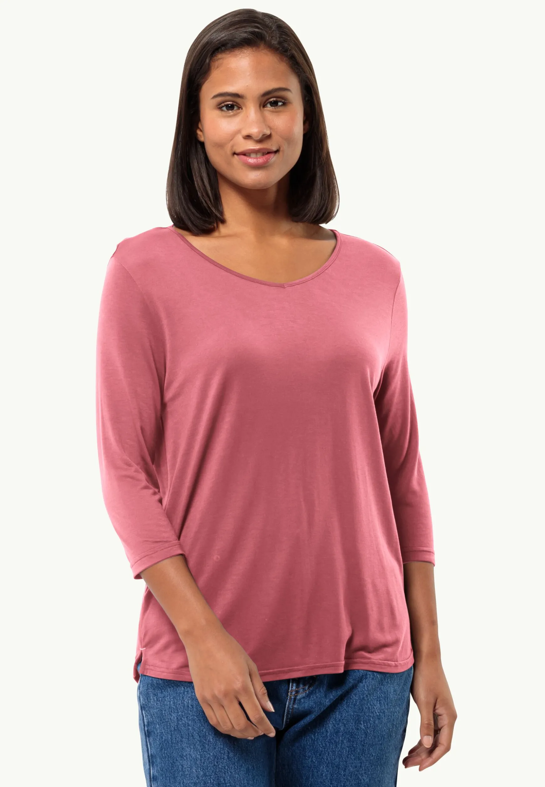 Met het MOLA 3/4 T-SHIRT voor Dames keert de klassieke, sportieve stijl terug in je garderobe. De 3/4-mouwen bieden extra bescherming voor je armen en geven je een onmiskenbare look. De zachte, natuurlijke stof SINGLE JERSEY is tijdens dagwandelingen, bij de koffieklets met vrienden en ook bij het ontspannen thuis heel prettig om te dragen. Kies uit verschillende kleuren, passend bij je stijl.