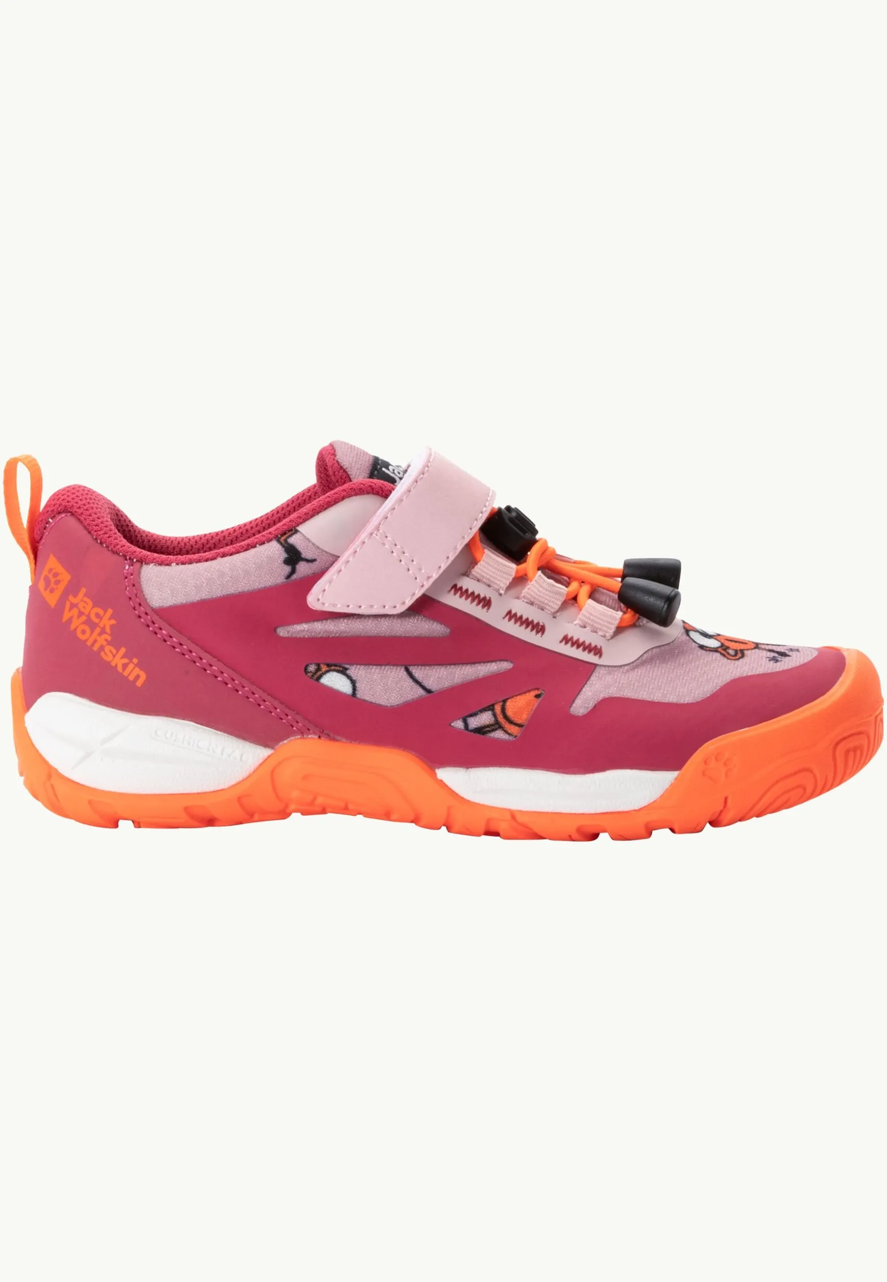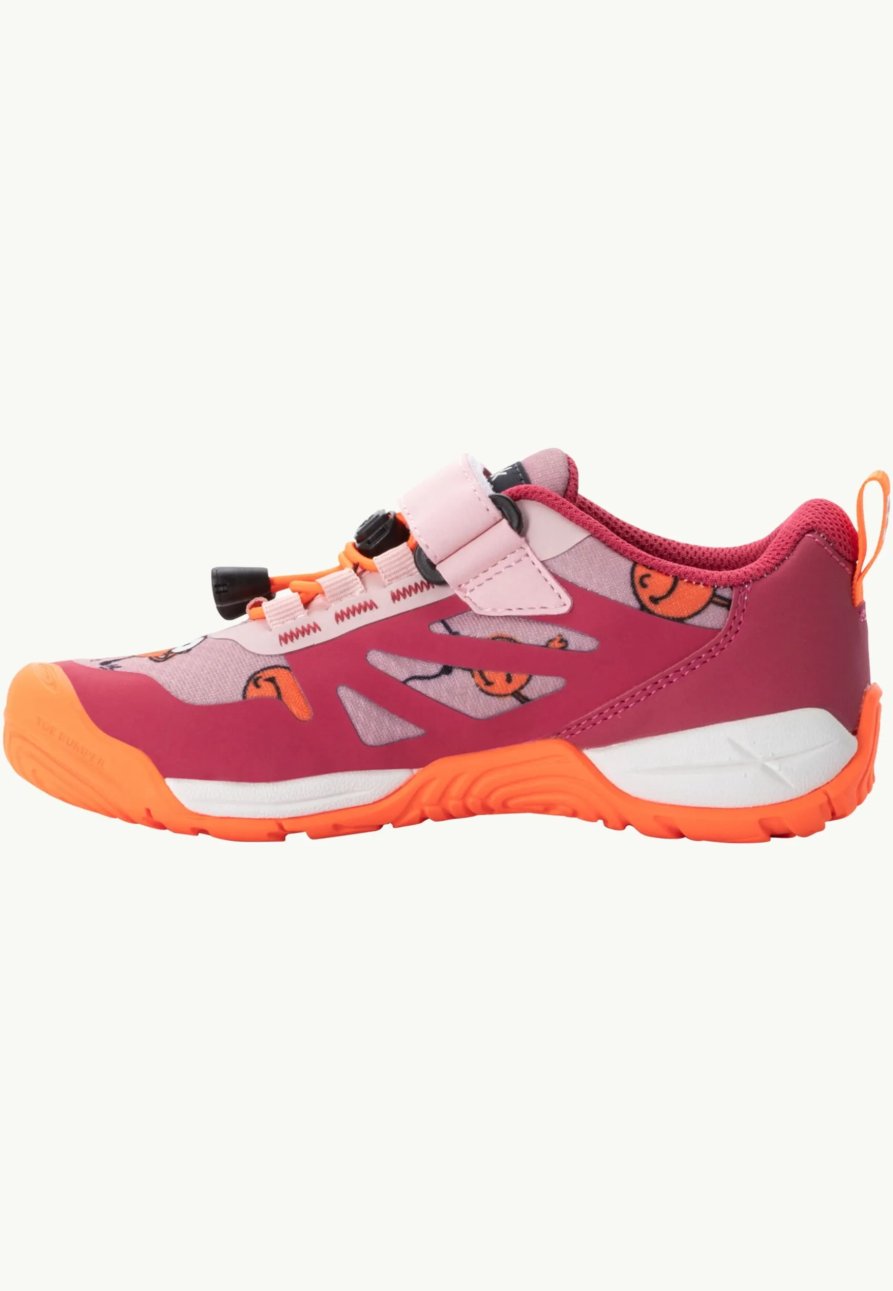 De SMILEYWORLD LOW is een slijtvaste, multifunctionele schoen met goede pasvorm. Een aanpasbaar snelvetersysteem gecombineerd met een afsluitende klittenbandsluiting houdt de voetjes stevig vast en maakt eenvoudig aan- en uittrekken mogelijk. De goed dempende tussenzool en de gripvaste rubberzool met dicht profiel zorgen voor draagcomfort, bescherming en de nodige grip.