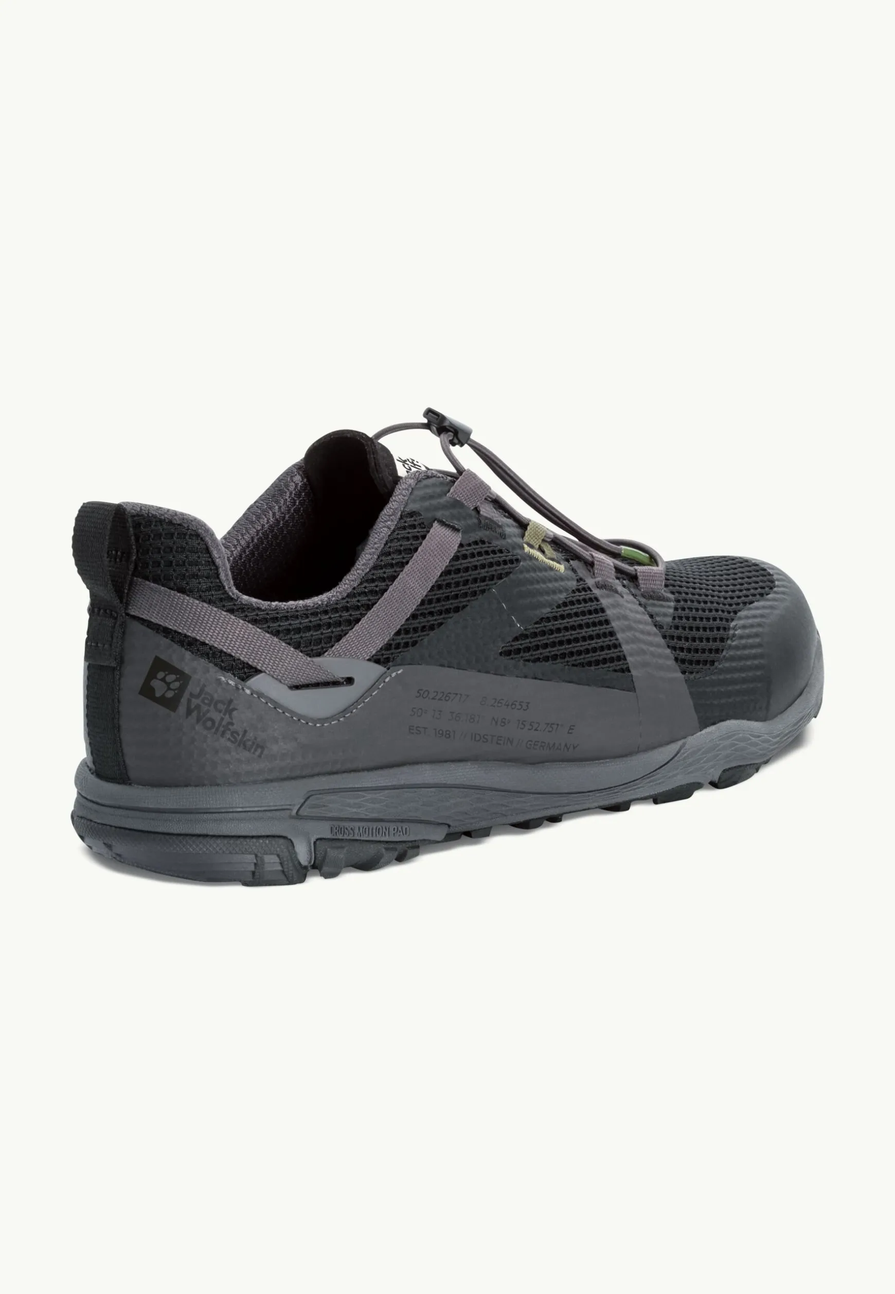 Das CROSS MOTION PAD sorgt für eine festere Sohle und nimmt den Aufprall des Fußes gut auf. Die Gummisohle bietet gute Traktion. Das elastische Schnellschnürsystem rundet das Leichtgewichtkonzept ab.